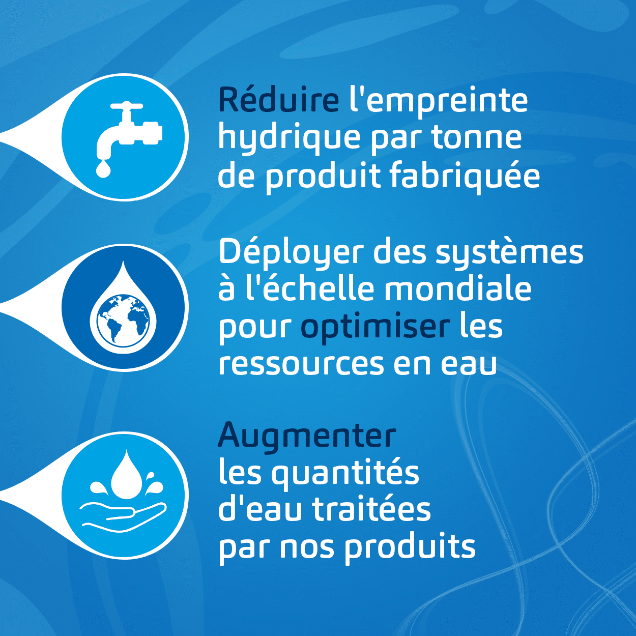 • Réduire l’empreinte hydrique par tonne de produit fabriquée.