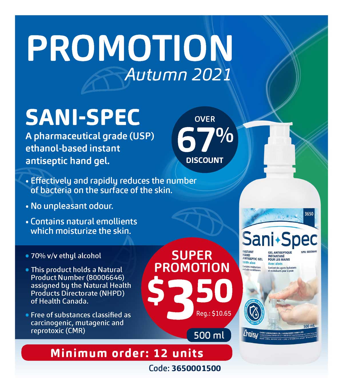 Product 3650 Sani-Spec is a Alcohol Instant Anstiseptic Hand Gel. This product is USP Grade (United States Pharmacopeia).